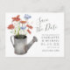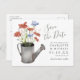 Rustic sparar det vykort som innehåller en bukett av vildblommor med vattenfärg, t.ex. poppies, kornblomma och gräs i en vatten-burk.