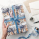 Vattenfärgsgrupp för katter sitta på snö med snötäcke