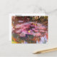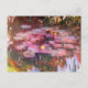 Ett vykort för brans konst med landskapsmålning, Vatten Lilies (1917) av Claude Monet (1840-1926). En damm av rosa hued lilja dynor med gula blommor. Monet producerade många målningar av vatten lilies från sina egna trädgårdar i Giverny, Frankrike.