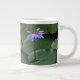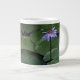 Bilden på detta Giant Mugg är ett originalfoto av MaeFlowers av en vatten-lily, en blomma som blommar mitt i de lila dynor som flyter på vatten. Blomman är en underbar lavender blå färg, som står ut från mörk grönt, runda lilypad.