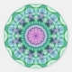 Fin grönt kaleidoskop med en rosa/lila vatten i centrum. Även om ett kalejdoskop är ett mönster som ständigt förändras av former och färg, är detta en digital stillastående version av detta. Intrikera mönster som upprepas i ett cirkulärt ram.