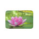 Den här badmattan i blommigten i elegant har en exquisite rosa vattenlily lotus-blomma som vilar på dynor i cirkelformad grönt. Ljusbåge i vatten reflekterar glöden mellan dynorna i denna vackra damm. En underbar idé för trädgårdsmästare!