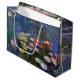 Oscar-Claude Monet (14 november 1840-5 december 1926) var en Fransk målare, en av de Fransk Impressionistiska målningarna och den mest konsekventa och skickliga utövaren av rörelsens filosofi att uttrycka sina uppfattningar före naturen, särskilt när det gäller plätering av landskapsbilden i luft. Uttrycket ""Impressionism" härrör från titeln på hans målning Impression, soleil levant (Impression, Sunrise), som 1874 visades i den första av utställningarna i oberoende som monterats av Monet och hans medarbetare som ett alternativ till Salon de Paris. Jean Monets ambition att dokumentera Franskens landsbygd ledde honom till att anta en metod för att måla samma scen många gånger för att fånga upp det förändrade ljuset och årstidernas övergång. Från 1883 bodde Monet i Giverny, där han köpte ett hus och egendom och påbörjade ett omfattande landskapsprojekt som omfattade lövdammar som skulle bli subjekt på hans mest välkända verk. Han började måla liljerna i vatten 1899, först i lodräts vyer med en japansk bro som ett centralt inslag och senare i raden av stora målningar som skulle sysselsätta honom kontinuerligt under de kommande 20 åren av hans liv. citat:Wikipedia