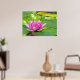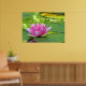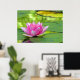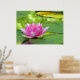 Den här poster innehåller en utsökt rosa vatten-lilja som vilar på dynor med cirkulär grönt. Ljusbåge i vatten reflekterar glöden mellan dynorna i denna vackra damm.