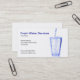 yrkesmässig visitkortdesign med ett sötvatten som häller in i ett exponeringsglas som isoleras på vitbakgrund