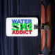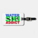 För vatten skida knarkaren! Svärta silhouettes av slalom, lura och hoppa vattenskiers med texten "vatten skidar knarkaren" i blått, grönt och röda brev.