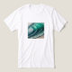 En häpnadsväckande bild av en kolossal våg, dess turkos vatten som skakas under solljuset. Vågens enorma kraft fångas upp när den kraschar mot stranden och skapar ett meriserande naturskådespel.