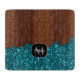 Anpassa faux glatt gigly home decor med ditt initiala och namn. Vattenblåspark, brunträ från glitter. Elegant faux sparkly aqua blue sparkles med brun rustik biet av trä över den. *Bilden av miniatyrbilder är inte glitter!