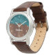 Vattenblåspark, rustiskt trä Monogram Armbandsur