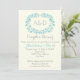 Aqua foliage wandedegen ram monogram bröllop par duschinbjudan med initialer med en akvblått ram gjord av löv och text i grått på elfenben. Den här moderna blommigten, snyggten och eleganten är en helt anpassade designdel av en perfekt med bröllop för sommartid i bröllop.