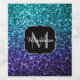 Anpassa den sparsamma flaska-etiketten med ditt första märke och namn. Vackerlig, glamorös mörk och ljusblå glansig glitter sparkles aqua lila ombre. Foto av cyan och mörk blått gnistor är inte glitter!