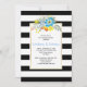 Söt, modern och chic blommigt bröllop pars duschinbjudan med vackert vattenblått och gula blommor och löv, en gräns gjord av svart och vitt rand och er text på vitt ram. Baksidan är täckt med en stripe mönster i svartvitt.