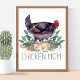 Watercolor Chicken with Flowers and text "Chicken Mamma" .Text-redo för din information.