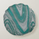 Lagrar av akvatiska och grått-mineraler går genom sten i denna naturligt unika runda kuddedesign. Stenen ge denna mjuka och bekväma kudde en modern roligt med vågigt rand av grått- och vattenblått som är naturligt vacker.