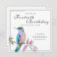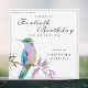 En vacker vuxen i modern elegant, överraskningsinbjudan med en handmålad vattenfärgsfågel på blommar gren. Anpassade för alla födelsedagskalendrar