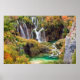 Scenskt vattenfall i en vacker pikturesk höstskola i nationalparken Plitvice Sjöar i Kroatien.