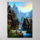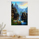 Vattenfall i staden Viking och i berget | AI Art Poster