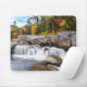 Vattenfall längs en bergsflod på en grumlig höstmorgon