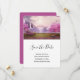 Spara datumkortet med en scenbild av ett fredligt lila sjö. Omgiven av lush cherry träd och vattenfall.