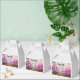 En liten affisch med en scenbild av ett fredligt lila sjö. Omgiven av lush cherry träd och vattenfall.