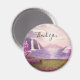 Ett tack till er magnet med en scenbild av ett fredligt lila sjö. Omgiven av lush cherry träd och vattenfall.