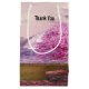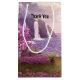 Gråväska med en scenbild av en fredlig lila sjö. Omgiven av lush cherry träd och vattenfall.