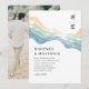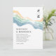 Abstrakta sommarbröllopsinbjudningar med en enkel vit bakgrund, en vattenfärg strandpalett design, era initialer i det övre högra hörnet, en elegant textmall med era namn och detaljer om bröllopet.