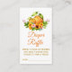 Elegant Vattenfärg Apelsiner Liten Söt Baby Doppvante Tombola Inclosure Kort innehåller vattenfärg blommor. Gula Solrosor, rosa rosor och peonior på botanisk grönska. Orange och Guld Text.