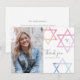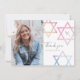 En modern, mjuk Bat Mitzvah porträttfoto tack kort design av Stacey Meacham med ombre vattenfärg stjärnor och ett tre initial monogram.