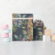 papprare julomslag visar en vacker vattenfärgskonstruktion med en fågel sitta på ett landskap omgivet av gräs, röda och lila bär, löv på vintern och helgdag dekorationer med dramatisk svart bakgrund.