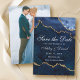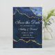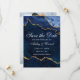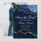 Modern Elegant Vattenfärg Blå och Guld Marmor Agat Geod Spara Datum-kort - Foto Baksida
