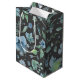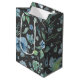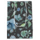 Vacker och mångsidig presentpåsdesign med blå blommor och lösa blad-mönster på mörk kolgrå bakgrund. Se gärna till att kolla in ytterligare artiklar i denna blomsterkollektion