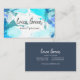 Konstnärlig vattenfärg stänk i blå palett med lite lila accent och handskrivet teckensnitt för elegant. Baksidan innehåller personuppgifter i elegant och dekorativt typsnitt med marin grått-bakgrund.