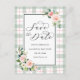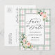 Detta bröllop spara datum-kort har målade vattenfärgblommor i rosa, vit och grön bladverk på en pastellfärgad vattenfärgsrutig bakgrund. För mer avancerad anpassning av denna design, vänligen klicka på "Anpassa"-knappen. Matchande artiklar finns också tillgängliga.