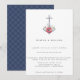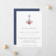 Vacker vattenfärg blommig utsmyckad ankar med marinblått nautiskt knutmönster, nautiskt tema bröllopsinbjudan.