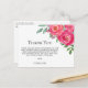 Detta söta flickans baby shower tacksamhetskort har vattenfärg blommor i rosa nyanser med grön lövverk. Lätt att anpassa. För att redigera ytterligare, använd Designverktyget för att ändra typsnitt, teckenstorlek eller färg. Eftersom vi skapar vår egen konst kommer du inte att hitta denna exakta bild från andra designers. Original Vattenfärg © Michele Davies.