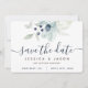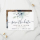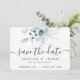 Vackra dammiga blå vattenfärg blommiga bröllop spara datum-kort! Placera din förlovningsbild på baksidan för en extra speciell touch! Matchande bröllopssamling tillgänglig!