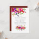 Vattenfärg blommig bröllopsdusch inbjudan med ljusa lila, vinröda och röda blommor med en touch av guld och roséguld glitter.