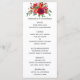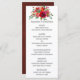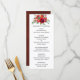 Vattenfärg blommig bröllopsmeny med röda, lila, rosa och burgunderfärgade rosor och pioner.