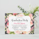 Bjud in gästerna med stil med denna eleganta examensfest inbjudan med en vattenfärg blommig ram och en mjuk rund etikett för dina detaljer. Den skrivna “Examensfest” rubriken passar med klassisk serif text för en tidlös, feminin look. Baksidan har koordinerande rosa randiga detaljer för en söt, polerad finish.