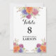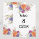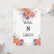Ett elegant bordskort med ljusa vattenfärgblommor. Bordskorten är en del av en komplett bröllopsinbjudan uppsättning.