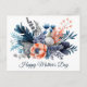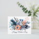 Vackra blå, persika och grå vattenfärg blommor - Mors dag kort