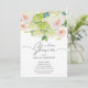Brunch och bubblig bröllopsfest-inbjudan visar dina detaljer i chic bokstavsstil accentuerad med vackra vattenfärg blommor - vita och gröna hortensior, rosa och krämfärgade rosor, prästkragar, små stjälkar och blad och rosa rosa på baksidan. MATCHANDE föremål i vår butik.