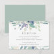 Designad för att samordna med vår Mountain Meadow bröllopssamling, har detta eleganta vår- eller sommarmottagningskort en över- och underkant med eteriska vattenfärgblommor i pastellfärger av salvia grön och viol purpur. Personifiera med din mottagningsdetaljer, inklusive tid, lokal och adress, i klassisk medelgrå stil.