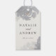 Den romantiska blomfavorit-taggen har lösa vattenfärg-målade blommor i hörnen (rörliga) och parets namn och datum. Denna samling finns i en mängd olika färger. Besök Vattenfärg blommor-samlingen av Stacey Meacham för fler alternativ och matchande tillbehör som tackkort, inbjudningar, presentkort, menyer, bukband med mera.