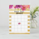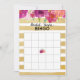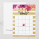 Bröllopsdusch-bingokort med vattenfärg blommor design och guld randig bakgrund.