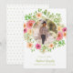 Denna vattenfärg blommande examens inbjudan har ett rosa, korall och grönt färgschema. Du kan lägga till ett foto av examen på framsidan av inbjudan och du kan också anpassa examen år, namn på examen och skolan de examinerar från. Baksidan har en enkel grön prickig design.