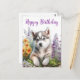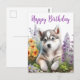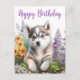 Vattenfärg blommor och sibirisk husky valp vykort