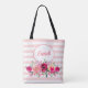Vattenfärg Blommor på Rosa Ränder Monogram Tote Vä Tygkasse
