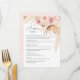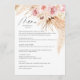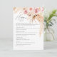 Vattenfärg Boho Blommig Pampas Gräs Bröllopsmiddagsmeny. Vacker rosafärgad botanisk blommönster på baksidan av kortet. Detta bröllopskort är perfekt att placera ovanpå bröllops tallriken för ett boho-temat bröllop.
